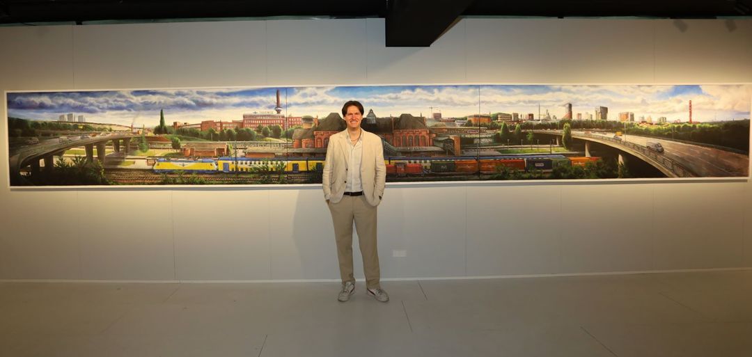 Ein besonderes Highlight der Ausstellung ist ein monumentales 8-Meter-Panorama, das eine 180-Grad-Ansicht von Harburg (Foto unten) zeigt. Über mehrere Monate hinweg arbeitete Ralf Schwinge an diesem Werk, das die Stadt in ihrer gesamten Weite einfängt.
