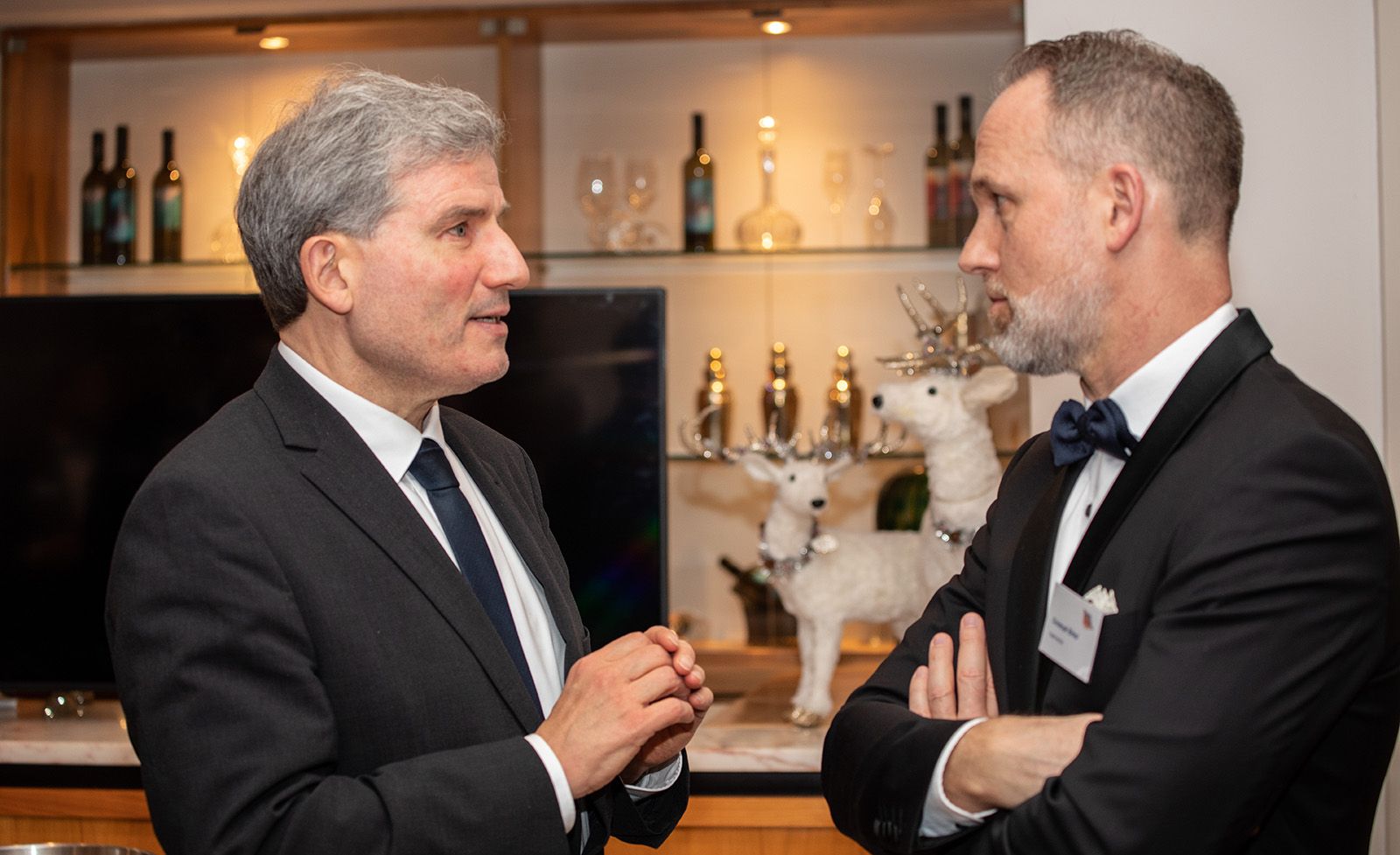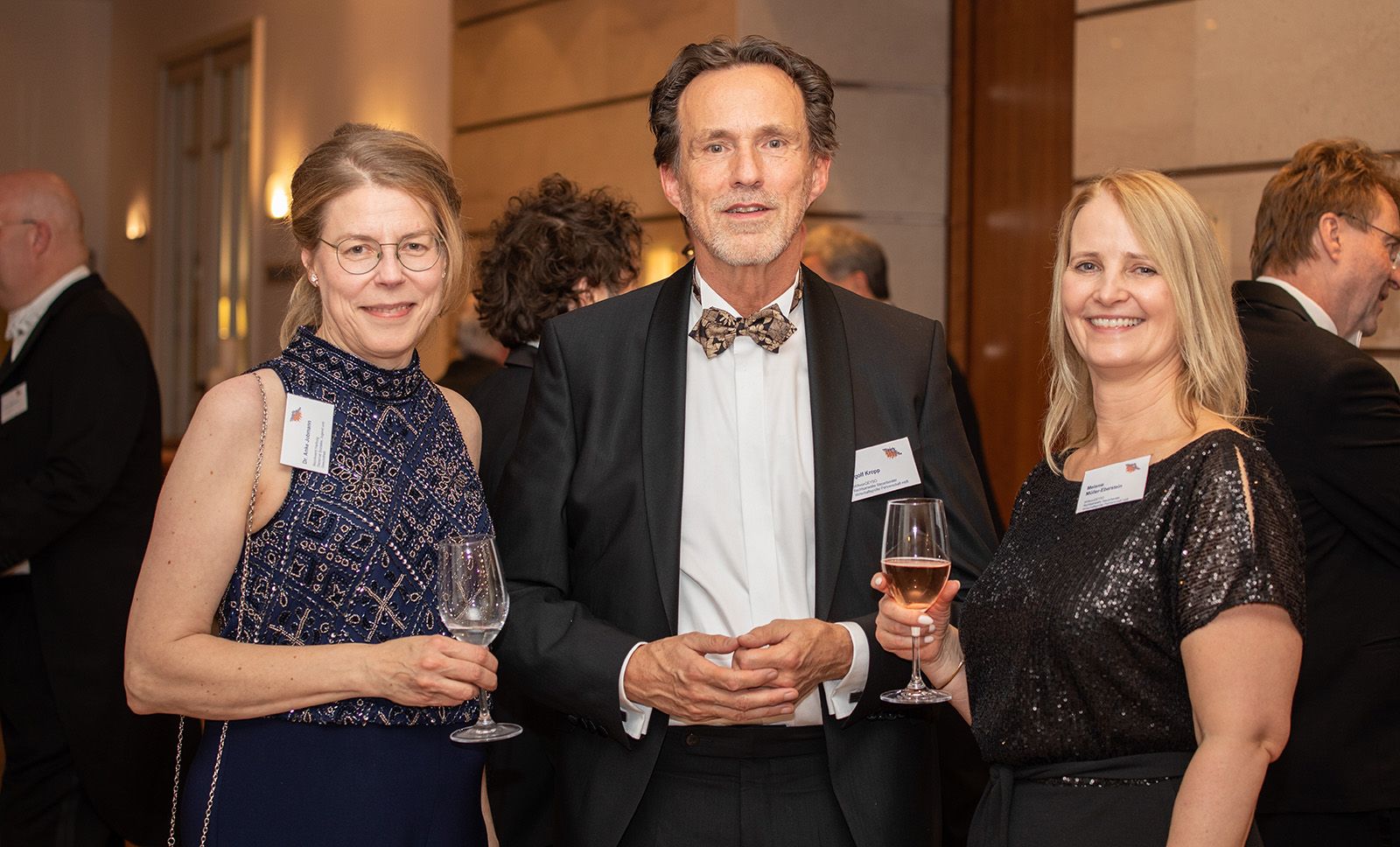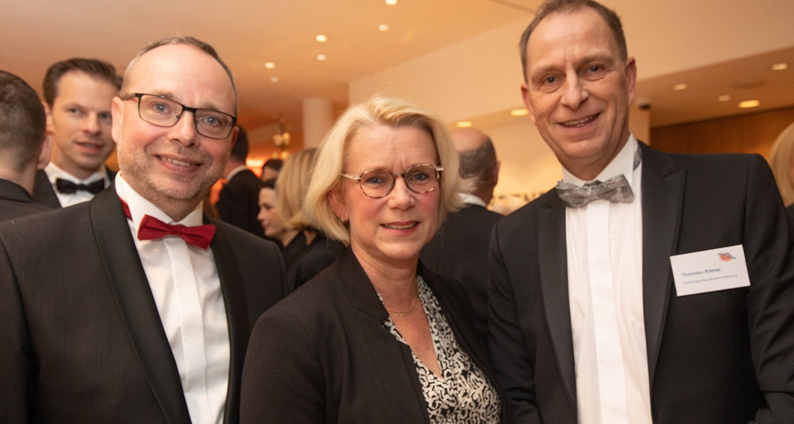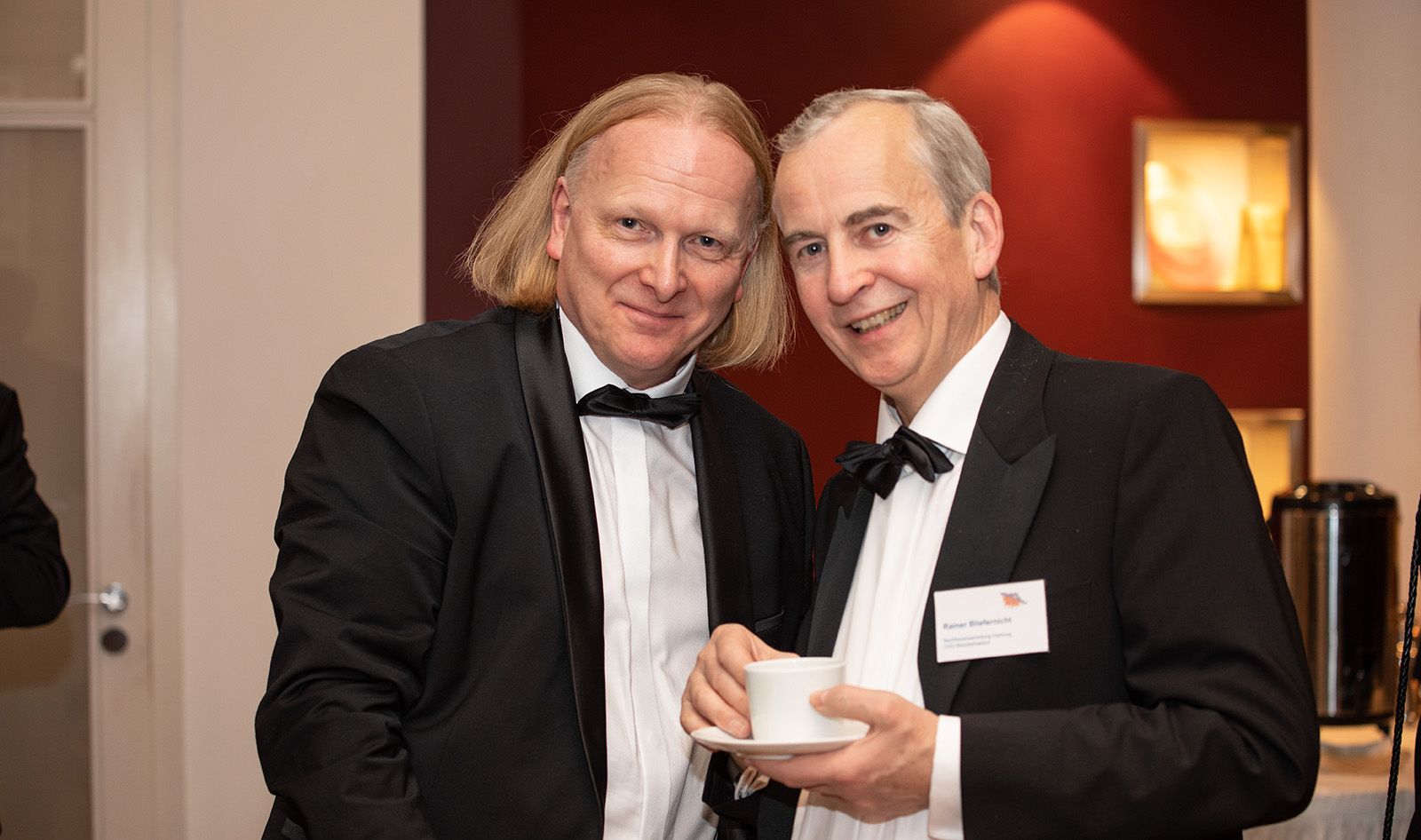 Die Gäste, darunter Andreas Sommer, Vorstand der Sparkasse Harburg-Buxtehude, die SPD-Bürgerschaftsabgeordnete Claudia Loss, Harburgs kommissarischer Bezirksamtsleiter Dierk Trispel, Notar Dr. Thomas Nesemann, Michael Niemeyer von SKNvonGeyso Dr. Olaf Krüger von der Süderelbe AG, Steuerberater Frank Lerdon, Frank Lorenz von der Lorenz-Gruppe oder Uwe Schneider von der CDU-Bezirksfraktion, konnten die Reden beim anschließenden Hauptgang "Zweierlei von der Maispoularde" sacken lassen. Anschließend ging es zum Get-together, dem geselligen Teil, im Foyer, der erst deutlich nach Mitternacht endete.